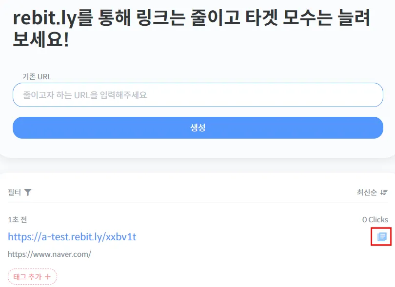 랜딩시키고자 하는 url 입력 → 생성 버튼 클릭