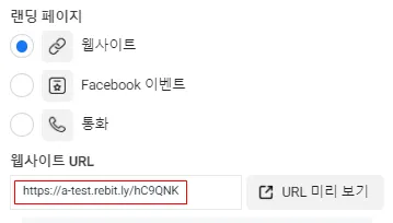 각 광고 플랫폼의 랜딩 URL입력 칸 → 복사된 링크 삽입