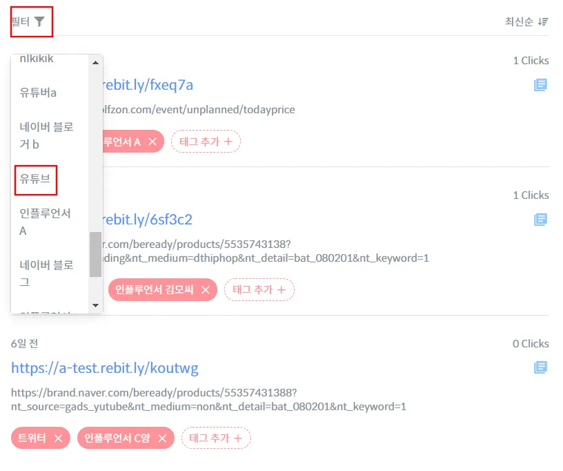 이밖에도 링크에서 네이버 블로그로 태그를 설정해놓았다면 네이버로만 필터링해서 효과를 체크해볼 수 있을 것입니다.