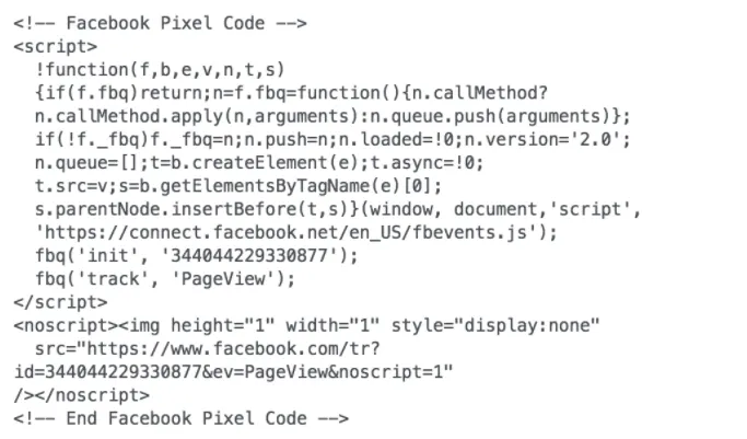 이 코드는 자신의 웹사이트에 넣기만 하면 페이스북에서 제공하는 픽셀 도구를 통해서 이 고객이 누구인지, 어떤 행동을 얼마나 하고 있는지, 이전 경로는 어떻게 되는지 등을 측정하고 데이터를 활용할 수 있게끔 도와주는 도구죠