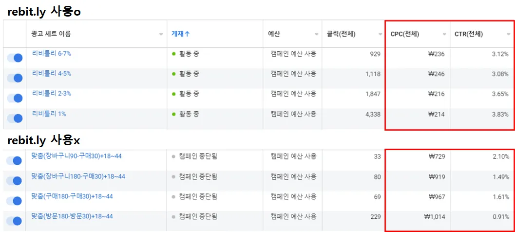 처음이라고 말씀하셨기 때문에 rebit.ly가 광고 효율에 도움을 줬다고 판단됩니다.