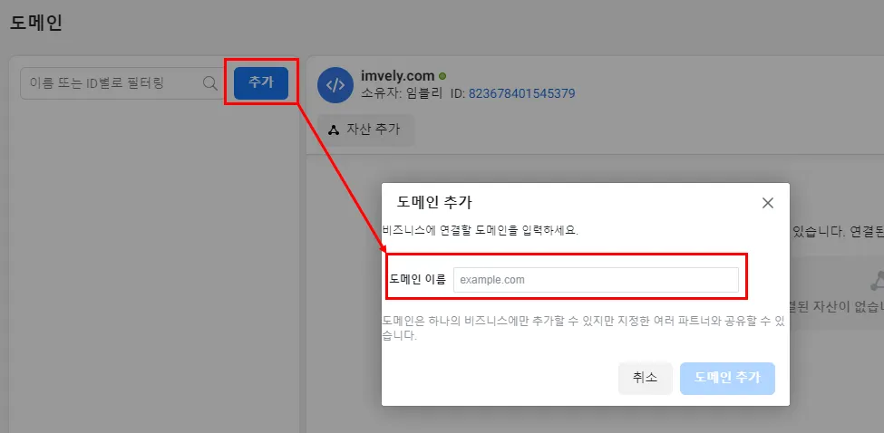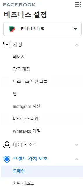 1. 도메인 관리 페이지 진입: 비즈니스 설정 → 브랜드 가치 보호 → 도메인