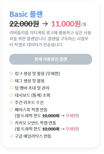 Rebitly는 현재 베타 서비스 기간으로 Basic 플랜에 대해 할인이 적용됩니다