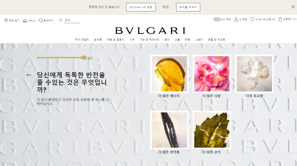 이 제품들을 구매하는 방법은, 먼저 불가리 사이트에서 소비자들은 몇가지 질문에 답하게 됩니다. 아래는 제가 번역기를 돌려본 건데요.